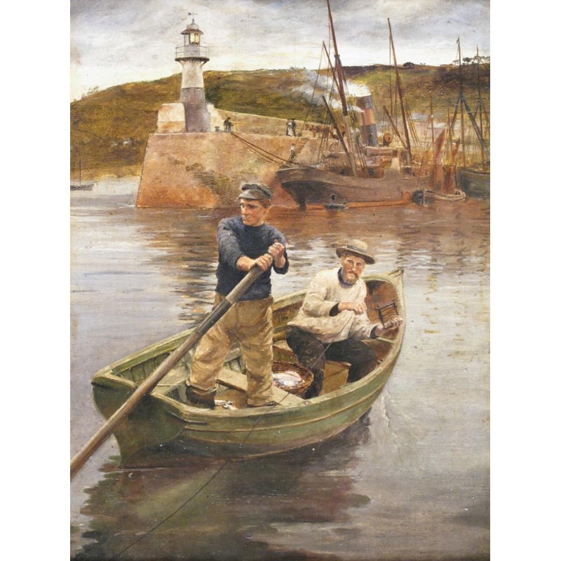 Follower of Stanhope Alexander Forbes R.A. Fishermen in Newlyn Harbour Oil on board 40.5 x...