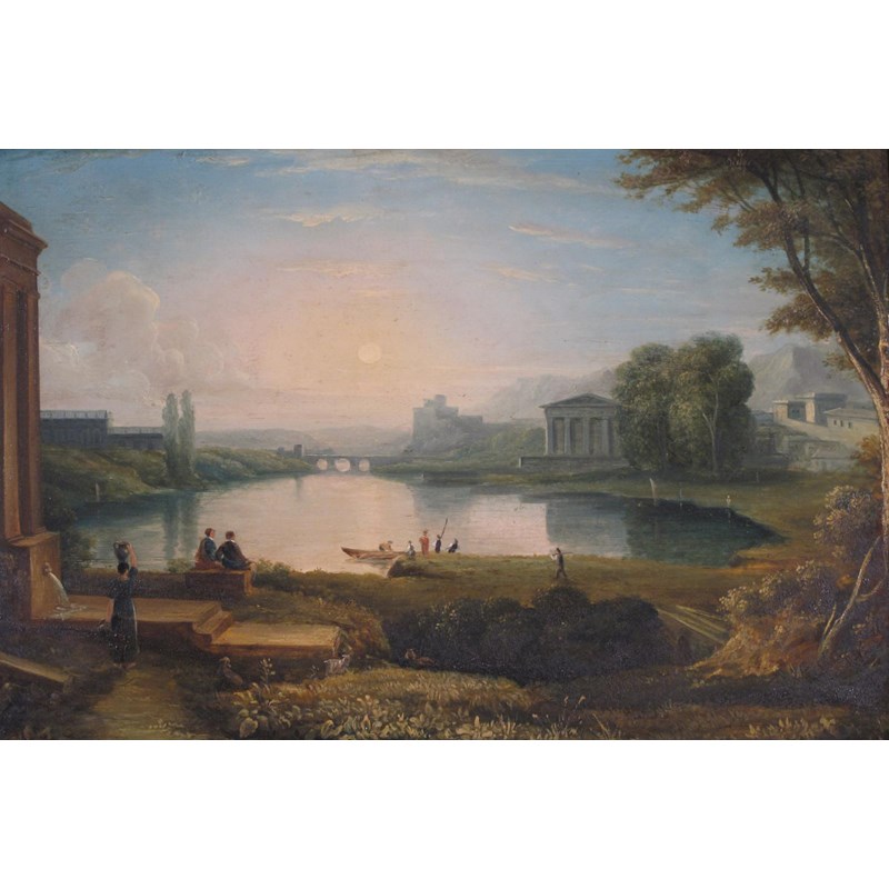 English School (19th Century) Figures in an Italianate landscape Oil on panel 36.5 x 56cm; 14¼ x...