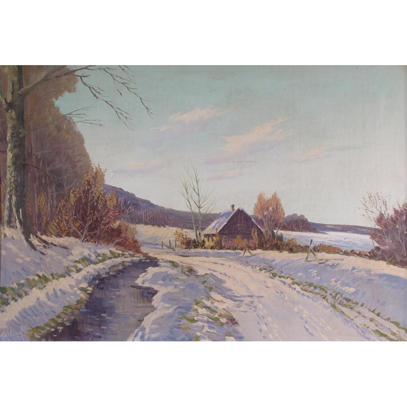 Scandanavian School c. 1900 Winter scene Signed indistinctly Oil on canvas laid down on board 64...