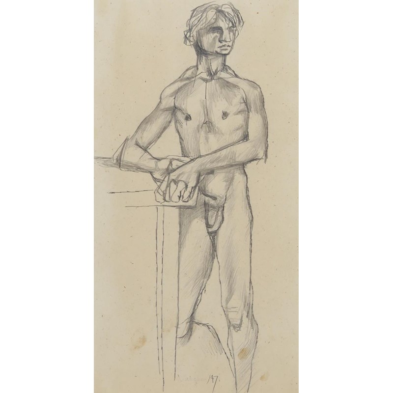 ‡Keith Vaughan (1912-1977) Male Nude by Table 1947 Signed and dated 47 Pencil 33 x 17cm...