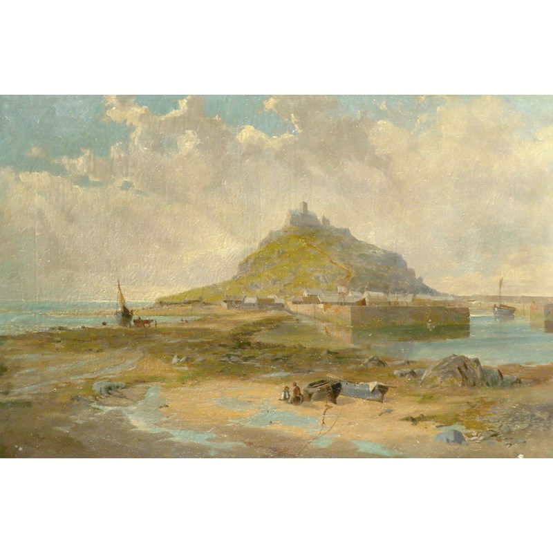 View of Saint Michael's Mount, Cornwall, with figures on the shore