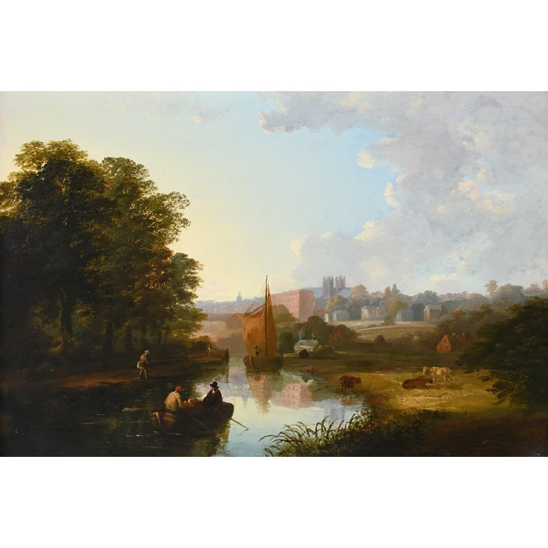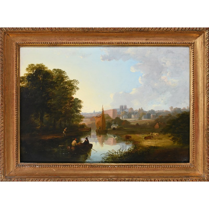 View of the Exeter Canal, with Exeter Cathedral in the distance