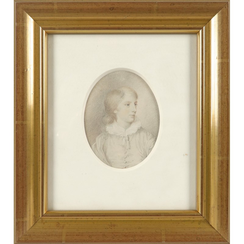 Pencil and watercolour heightened with white, oval, in a rectangular gilt-painted wooden frame