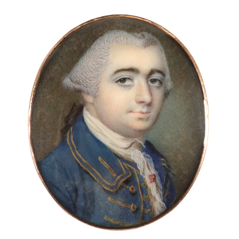Portrait miniature of a gentleman wearing a blue coat with gold braid