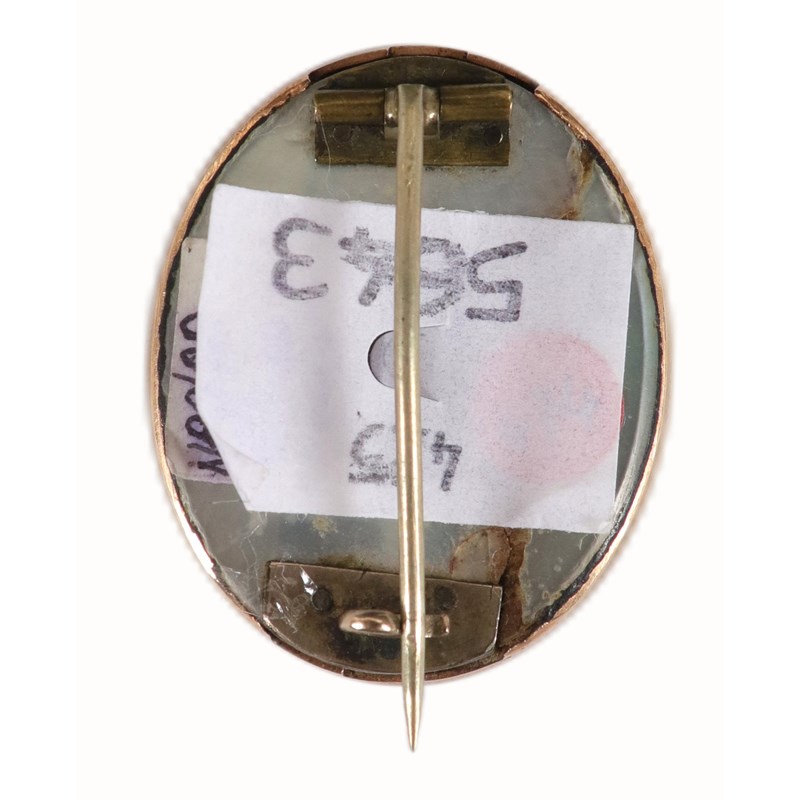Oval, in a gilt metal brooch frame with opalescent reverse