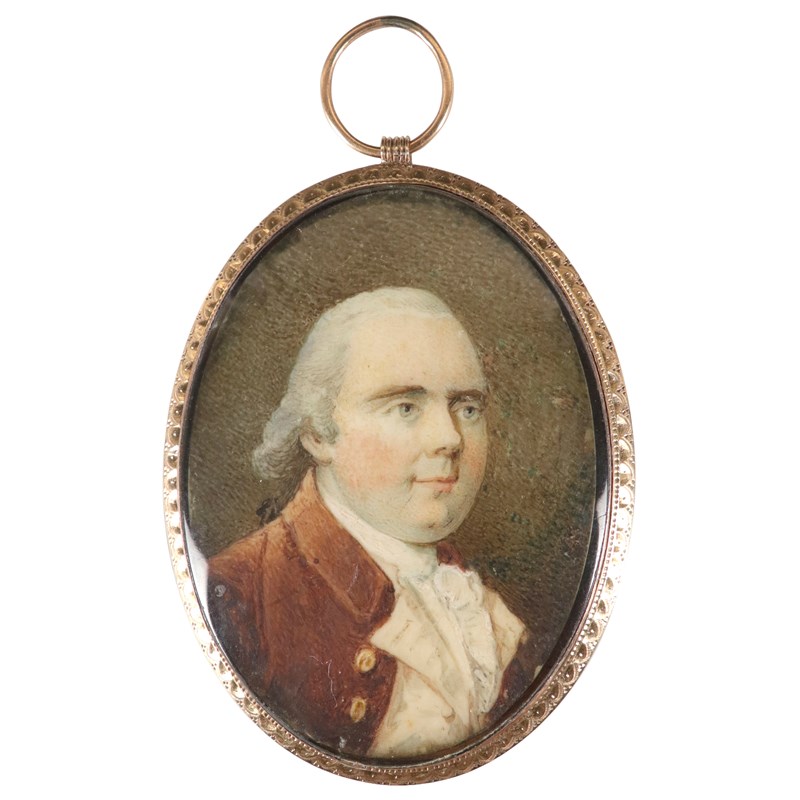 Portrait miniature of a gentleman wearing a brown coat, with powdered hair en queue