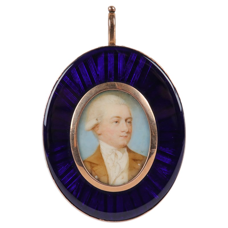 Portrait miniature of a gentleman wearing a brown coat, white waistcoat and powdered wig