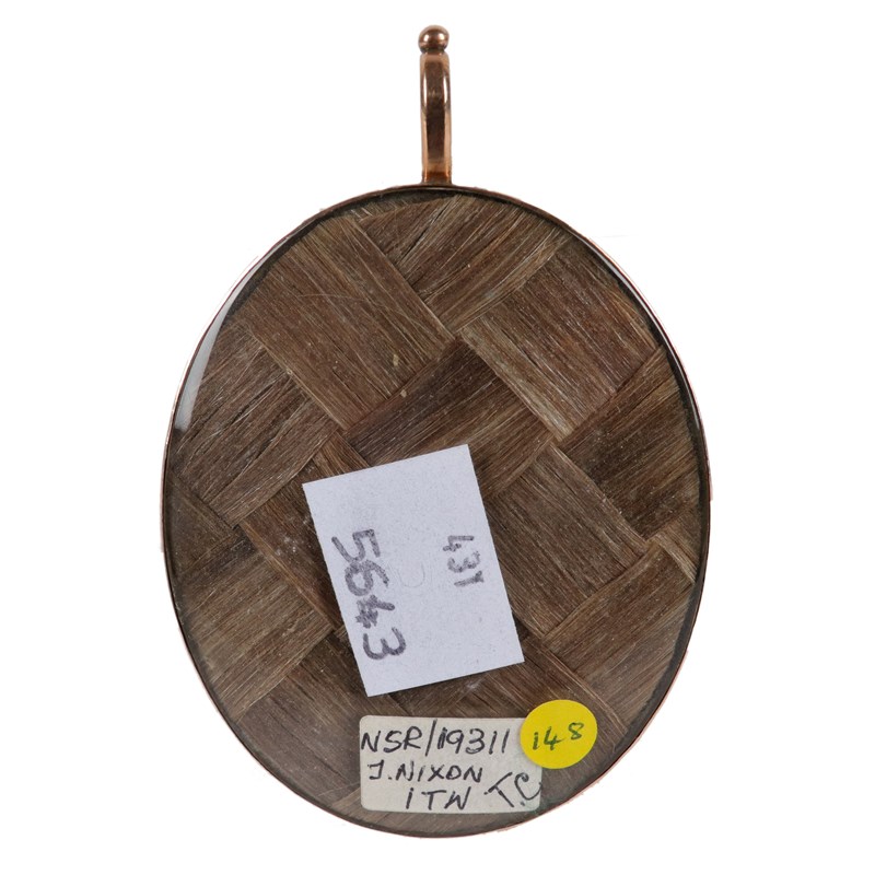 Oval, in a gilt metal frame with blue glass border and hair reverse