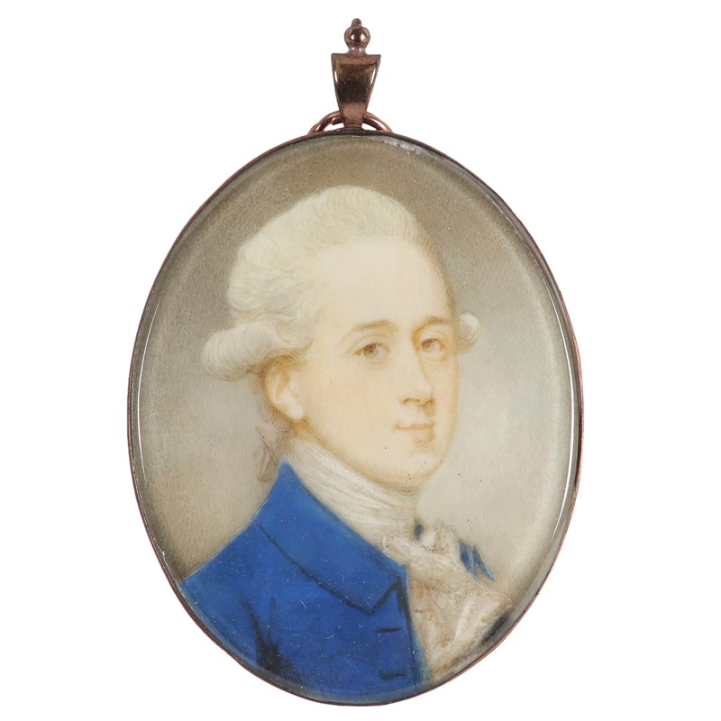 Portrait miniature of a gentleman wearing a blue coat and powdered wig