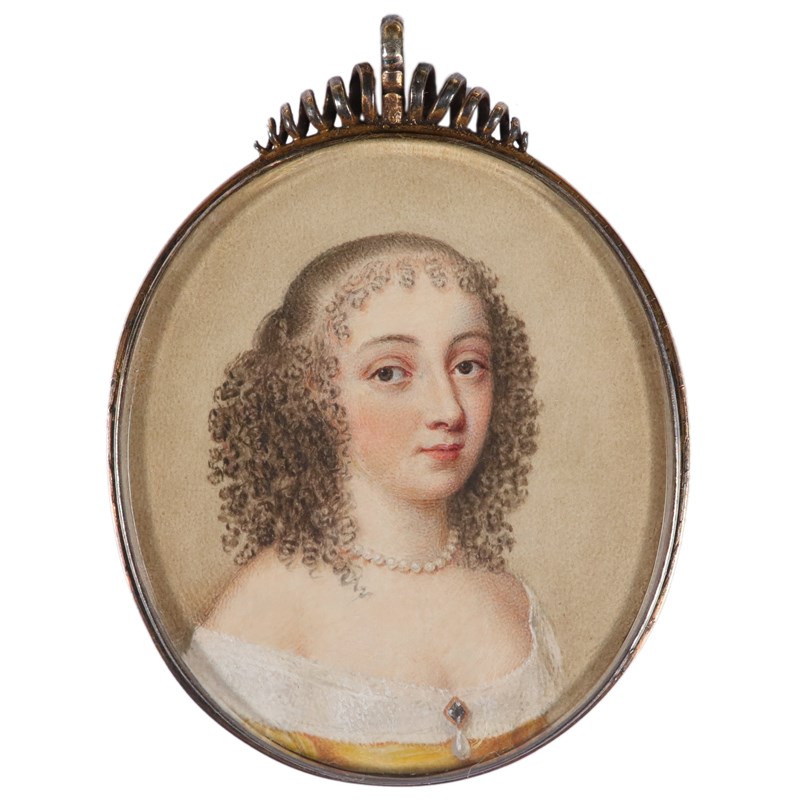 Portrait miniature of a lady, traditionally identified as Rachel Fane, Countess of Middlesex (1613-1680), wearing a yellow dress and pearl necklace