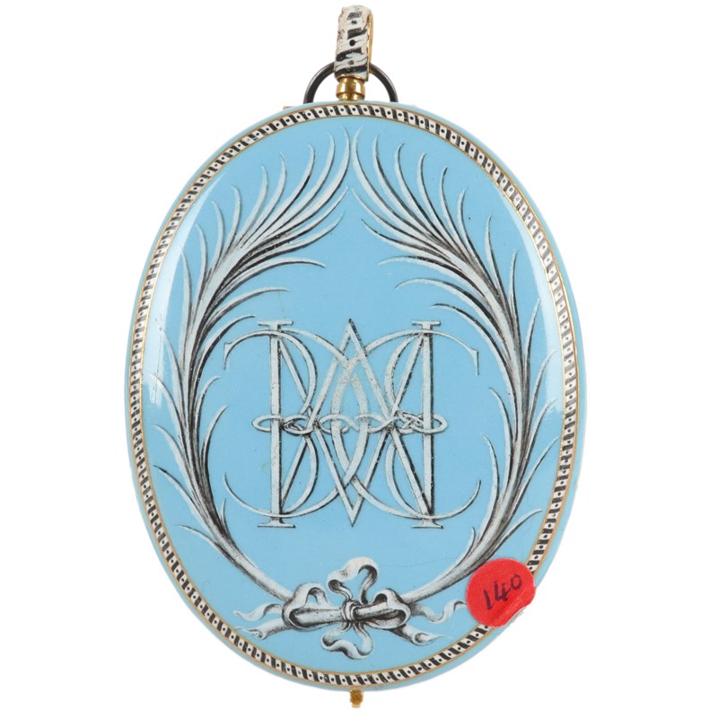 On vellum, oval, in a gilt metal and turquoise enamel frame