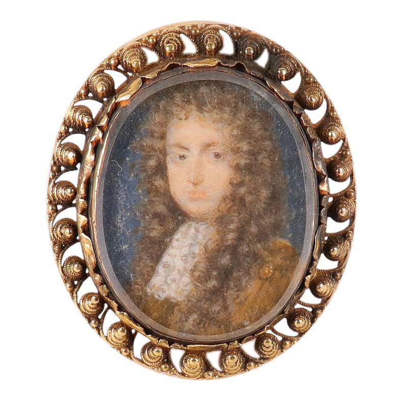 Portrait miniature of a gentleman wearing a brown cloak and long wig