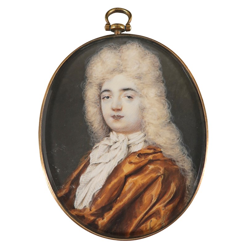 Portrait miniature of a gentleman wearing a brown cloak and long wig