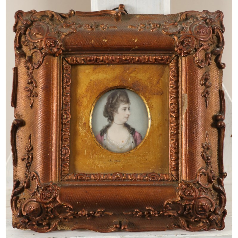 Oval, in a rectangular gilt gesso frame