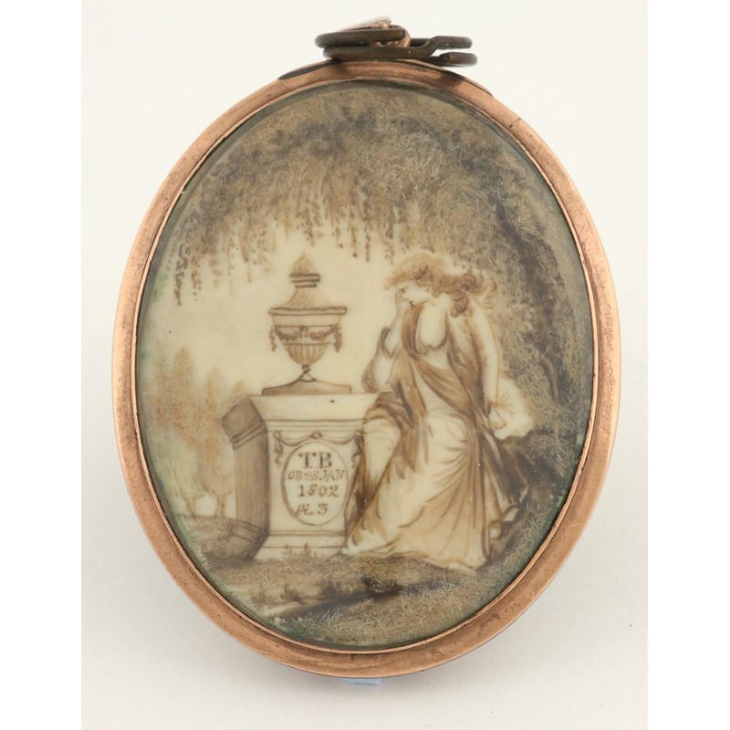 Oval, in a gilt metal frame, the en brunaille reverse depicting a mourning woman at a tomb