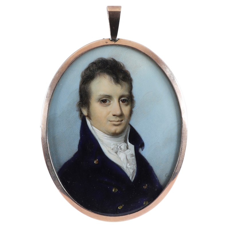 Portrait miniature of Matthew Vaughan, in a blue jacket and white stock