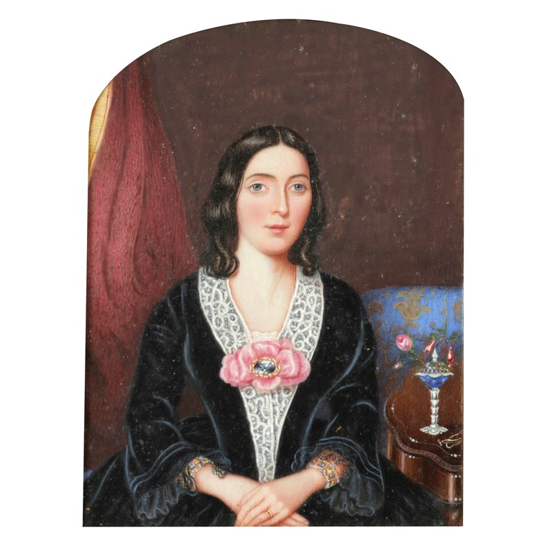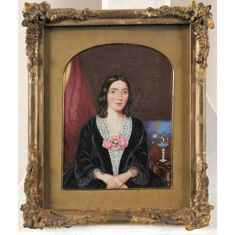 Portrait miniature of a lady, in a black dress, seated in an interior