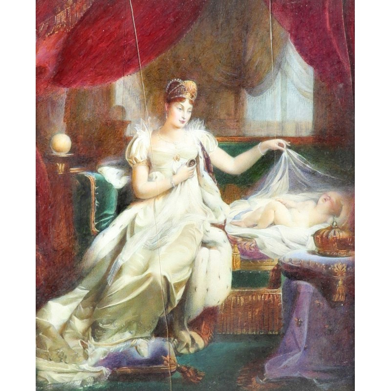 Portrait Miniature of the Empress Marie Louise watching over the sleeping King of Rome