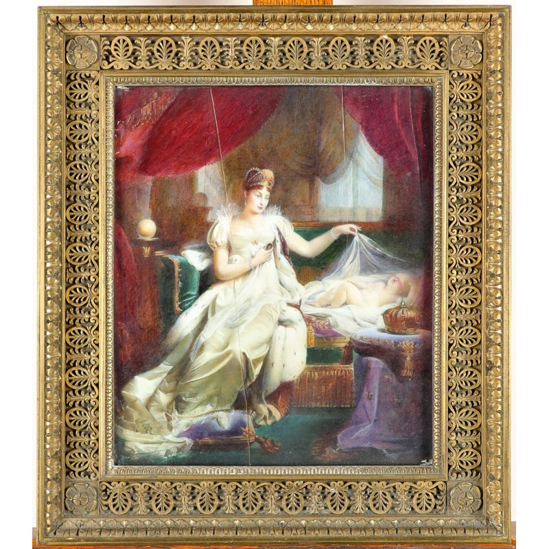 λAfter Joseph Franque Portrait Miniature of the Empress Marie Louise watching over the sleeping...