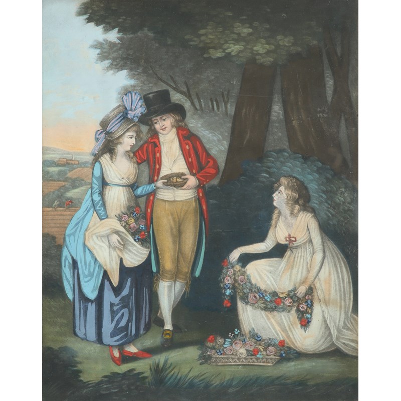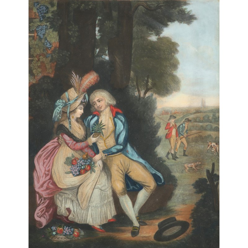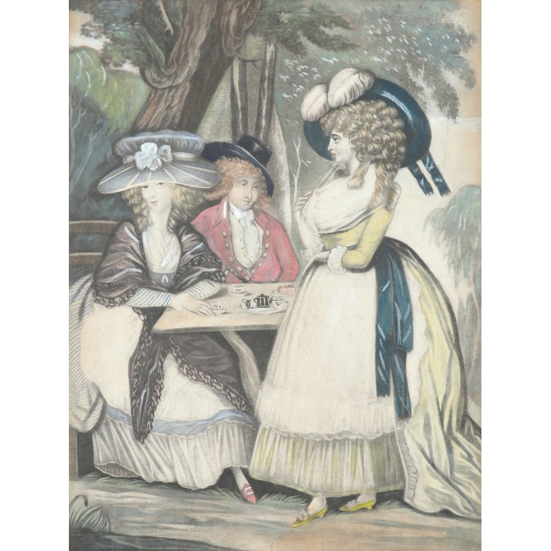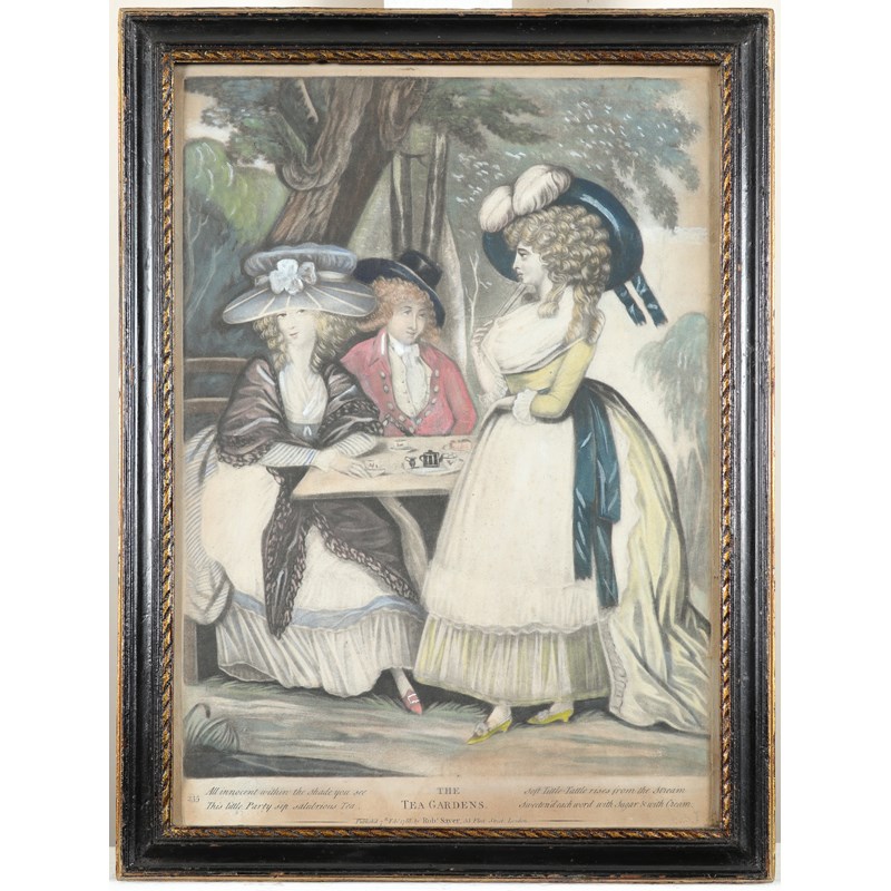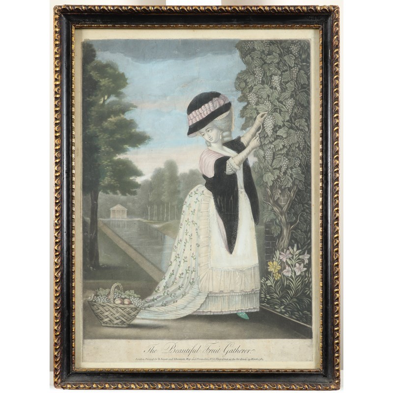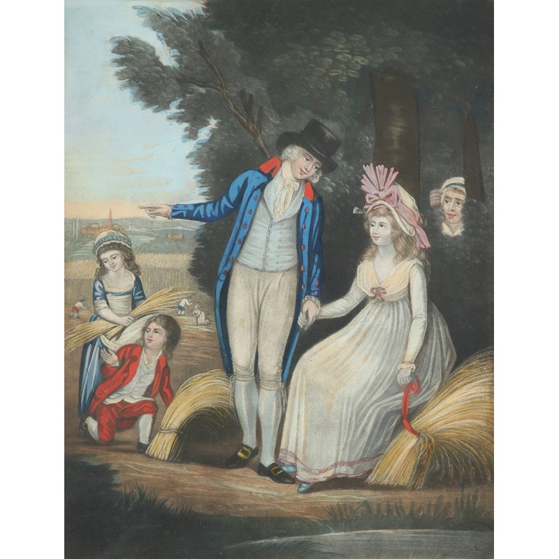 Together with 'The Tea Gardens' and 'The Beautiful Fruit Gatherer'; two, both hand-coloured mezzotint published by Robert Sayer; each 35 x 24.5cm; 13¾ x 9¾in (plate) (6)