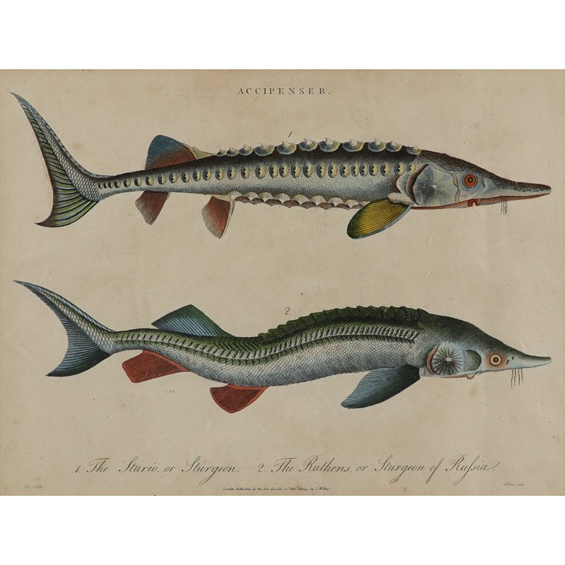 Together with John Pass; Accipenser; hand-coloured engraving published by John Wilkes; 1804; 19.3 x 25cm; 7½ x 9¾in (3)