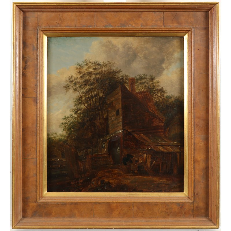 Circle of Cornelis Gerritsz. Decker A figure outside a dilapidated cottage Bears a signature Oil...