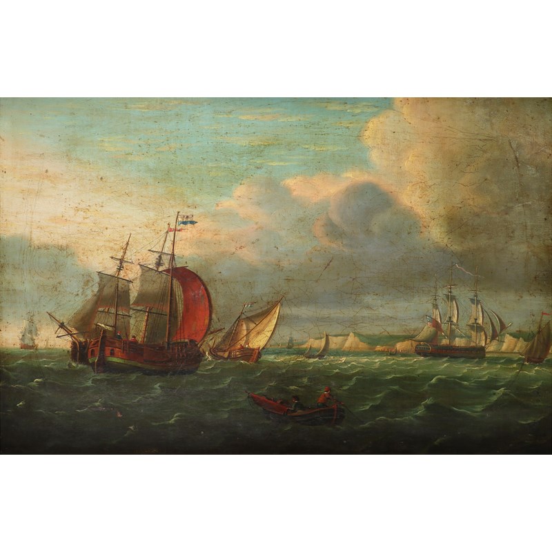 English School Early 19th Century Shipping off the cliffs at Dover Oil on canvas 30.7 x 45.9cm;...