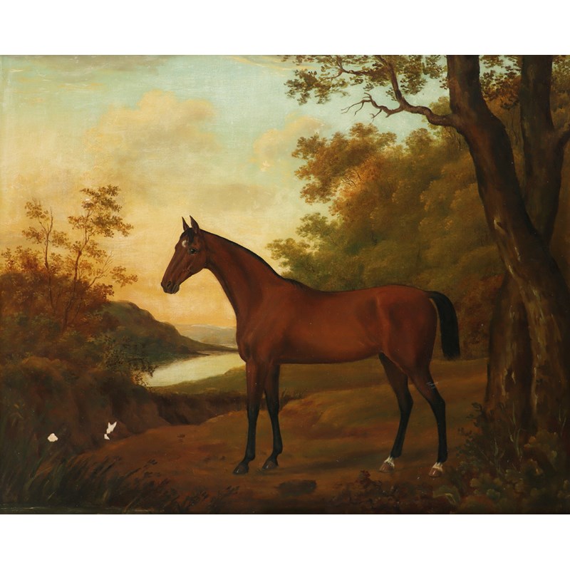 W. H. Ruggles (act. 1833-1846) A bay racehorse in a landscape Signed Oil on canvas 49.1 x 59.2cm;...