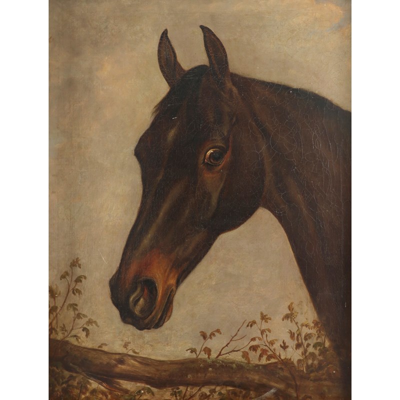 English School 19th Century Head of a bay horse Oil on canvas 88.9 x 75.5cm; 35 x 29¾in