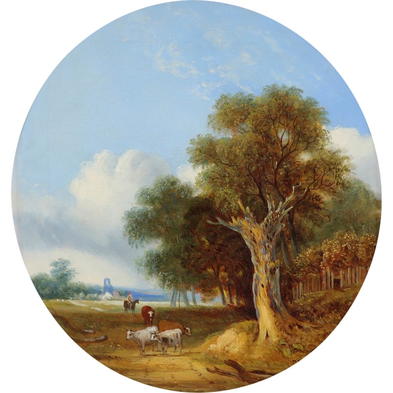 The former oil on panel, the latter oil on canvas, both in painted roundels