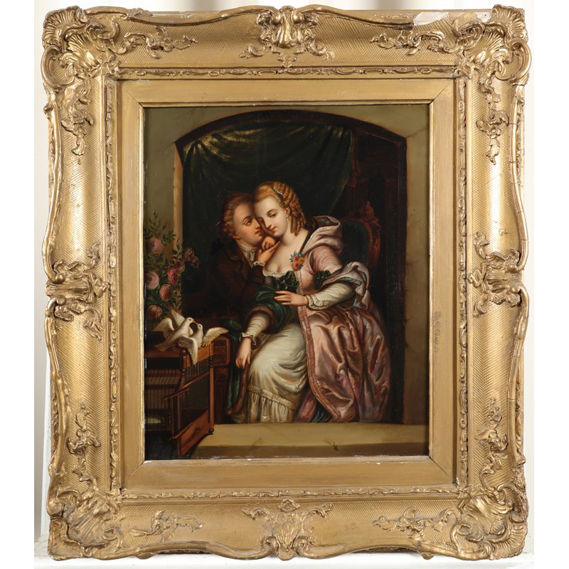 Continental School 19th Century Two lovers in a window Oil on tin 37.5 x 30.7cm; 14¾ x 12in...