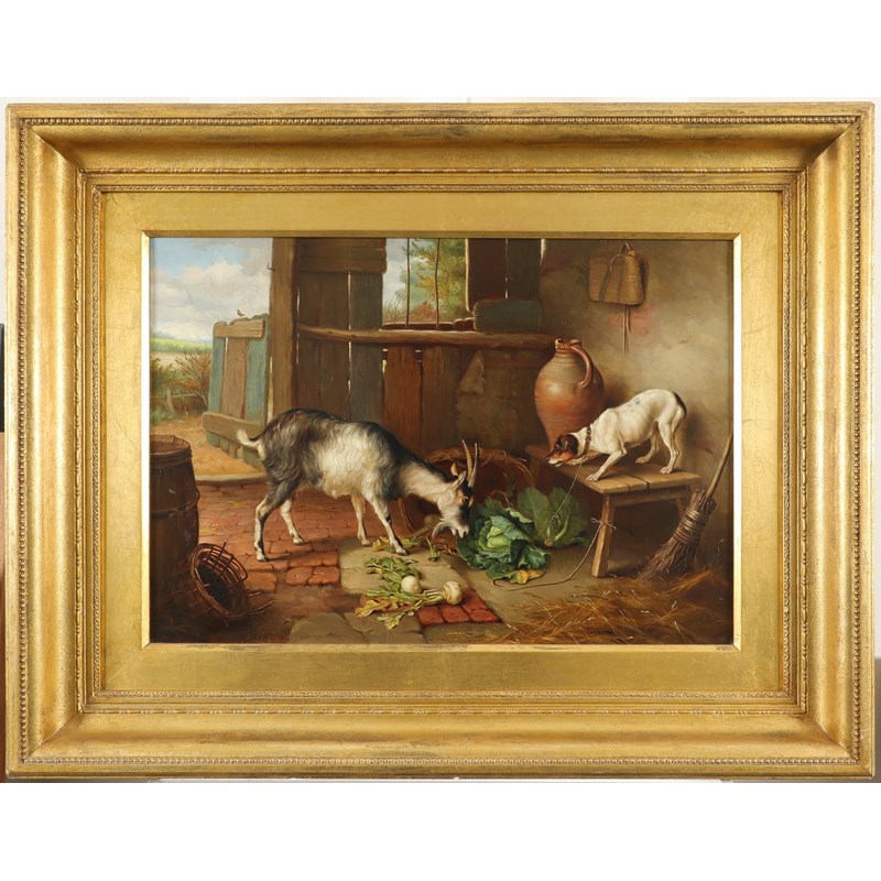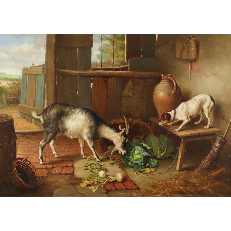 ‡Edgar Hunt (1876-1953) An uninvited guest Signed and dated 94 Oil on canvas 41.5 x 58.4cm; 16¼ x...