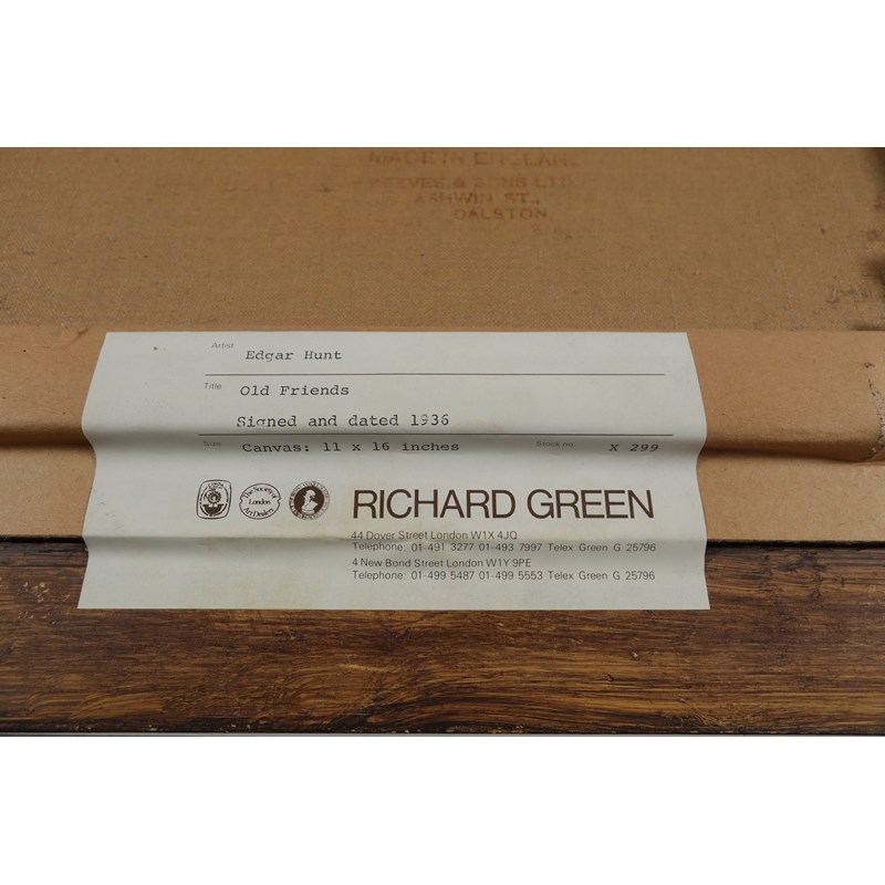 ‡Edgar Hunt (1876-1953) Old friends Signed and dated 1936 Oil on canvas 28.2 x 40.7cm; 11 x 16in...
