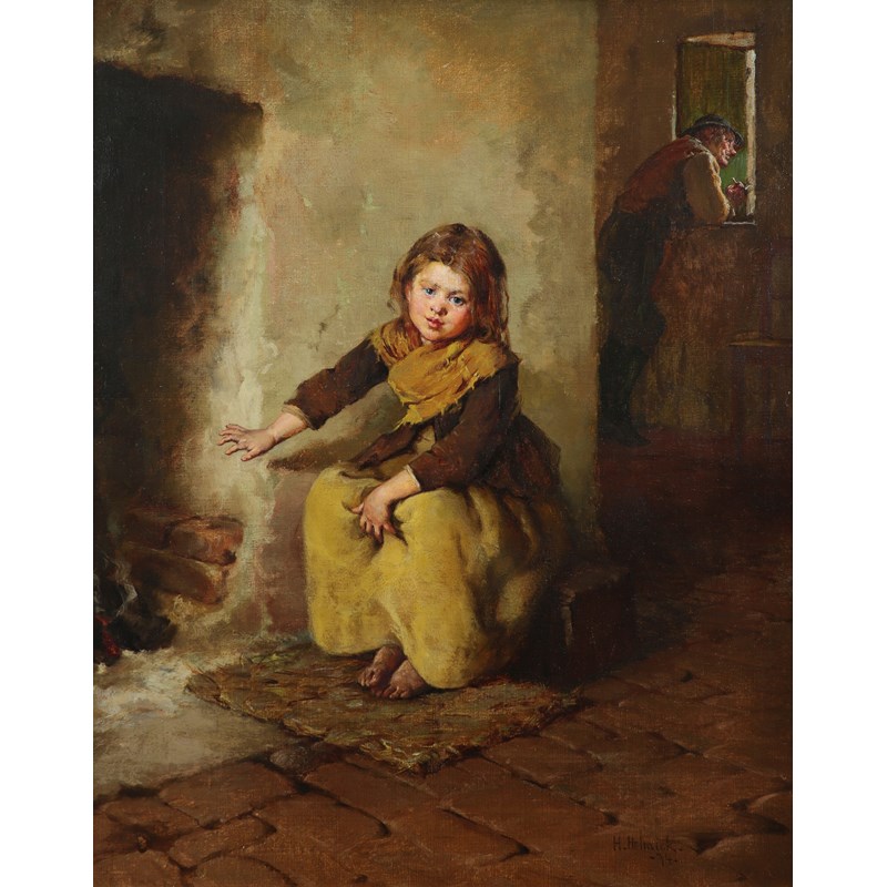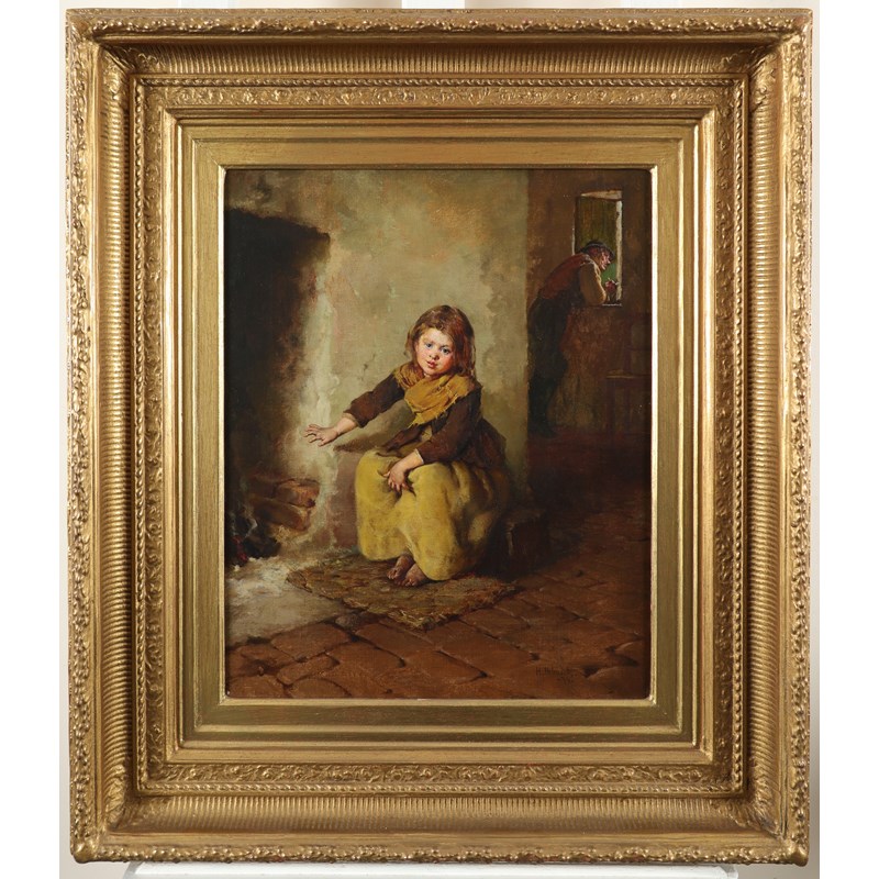 Howard Helmick (American 1845-1907) Girl by the fire Signed and dated 74 Oil on canvas 49 x 40cm;...