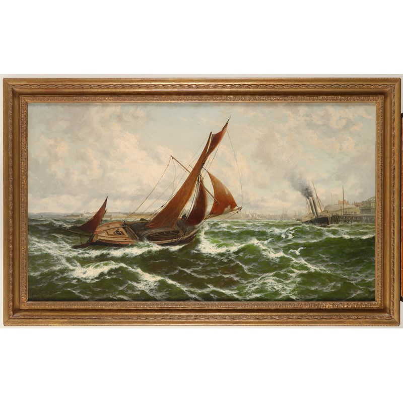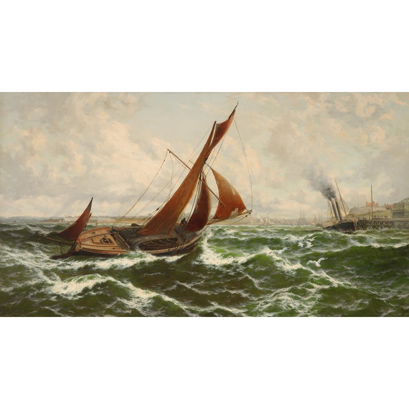 Thomas Rose Miles RCA (act. 1869-1906) Boat in choppy waters outside a harbour Signed Oil on...