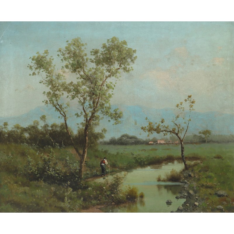 French School c.1900 Landscape with a figure by a pond Oil on canvas 41.9 x 51.3cm; 16½ x 20¼in