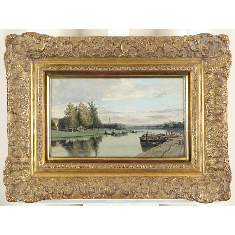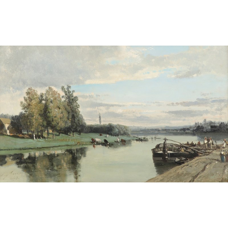 Eugène Cicéri (French 1813-1890) L'Ile d'Allègre à Bougival SIgned and dated 49 Oil on board 20 x...