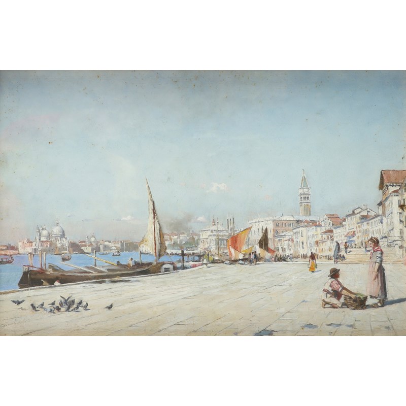 Arthur George Bell NEA (1849-1916) A view of Venice with the Bacino San Marco Signed Oil on board...