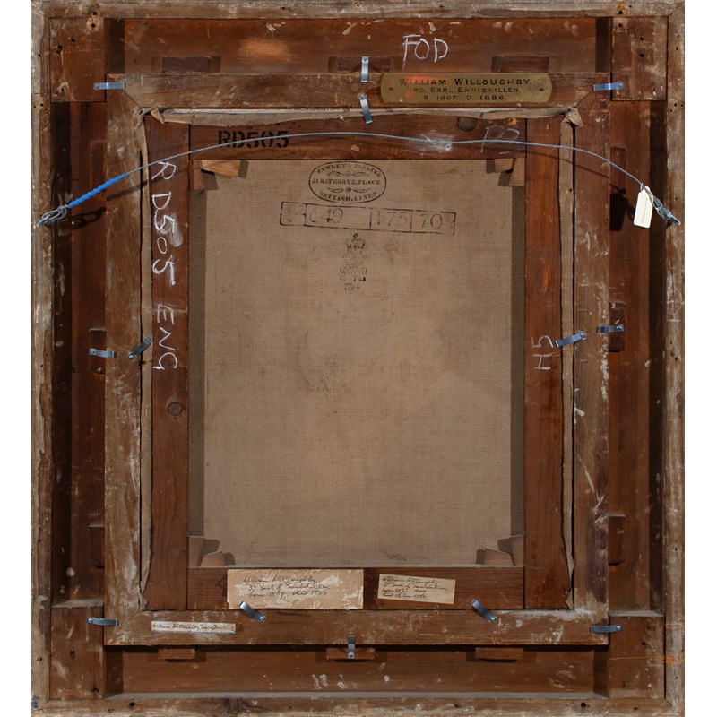 The present work was painted c.1827-28 and exhibited at the Royal Academy in 1828. Presumably, the portrait was commissioned to celebrate the sitter's 21st birthday in January of that year. There was a large party at Florence Court and an illumination at Enniskillen, and it seems plausible that the unveiling of the present work was part of the celebrations. Robinson also painted other members of the family, which hang at Florence Court as well, and some have identical frames and similar labels to the present work. William Willoughby Cole, later the 3rd Earl of Enniskillen, would go onto become a Member of Parliament and a renowned palaeontologist. He assembled a fine collection of nearly 10,000 fossils at Florence Court, which he would eventually sell to the newly founded Natural History Museum.