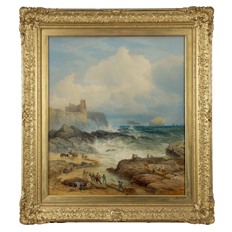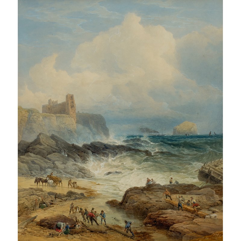 Figures on the Beach below Tantallon Castle, Bass Rock in the Distance