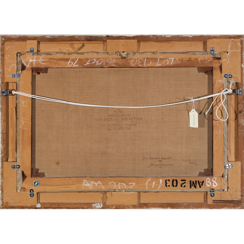 Signed Atkinson Grimshaw (lower right), and further signed, inscribed and dated The Heron's haunt/V.II.93/Atkinson Grimshaw (to reverse)
