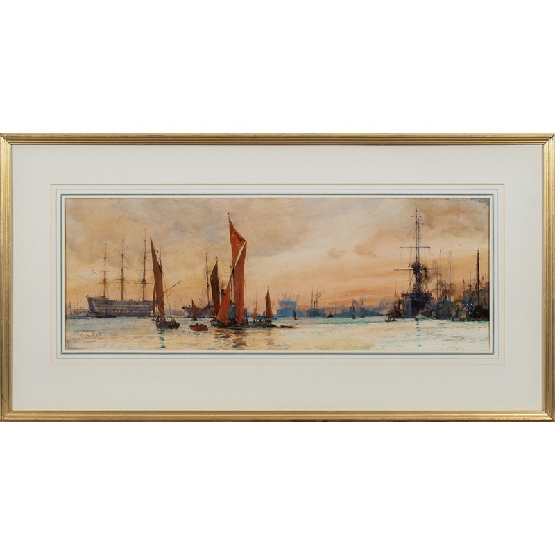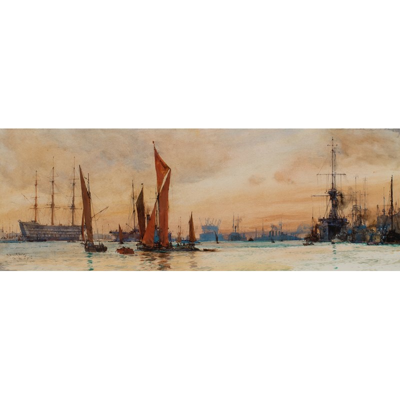 Signed, inscribed and dated Portsmouth Harbour/ Charles Dixon/ 1910 (lower left)