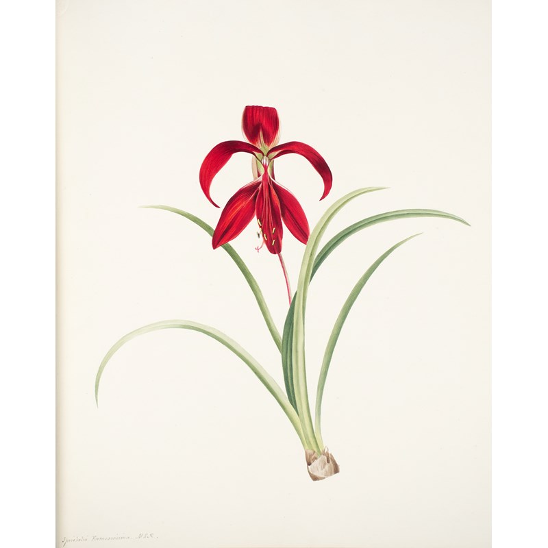 First edition, part one only (all issued), 9 original watercolour drawings, (8 called for), all but one initialled by the artist, each with letterpress title and description, one (Amaryllis Sweetii) laid to size, modern half morocco by Sangorski and Sutcliffe, original upper wrapper bound in, folio
