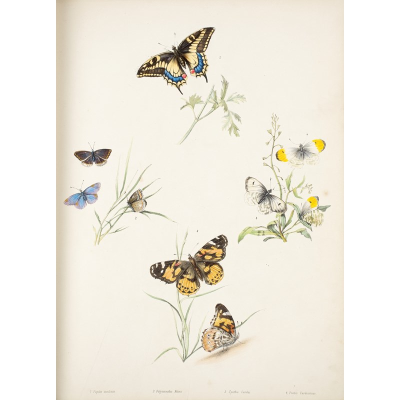 First edition, 4 parts bound in one volume, hand-coloured lithographed title, 24 hand-coloured lithographed plates, most heightened with gum arabic, guards, occasional spotting and browning, the first 5 plates somewhat creased, contemporary full green morocco, tooled gilt, extremities rubbed, all edges gilt, hinges cracked, large 4to