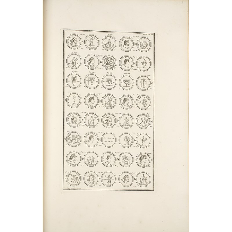 3 volumes, Large Paper copy, double-page engraved map ‘Paradisi Terrestris’, 8 engraved plates of coins, engraved head- and tail-pieces, occasional rust-marks, contemporary French polished crushed red morocco, dentelles and ruled borders gilt, all edges gilt, extremities very slightly bumped, folio.
