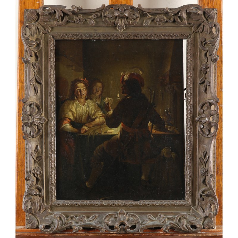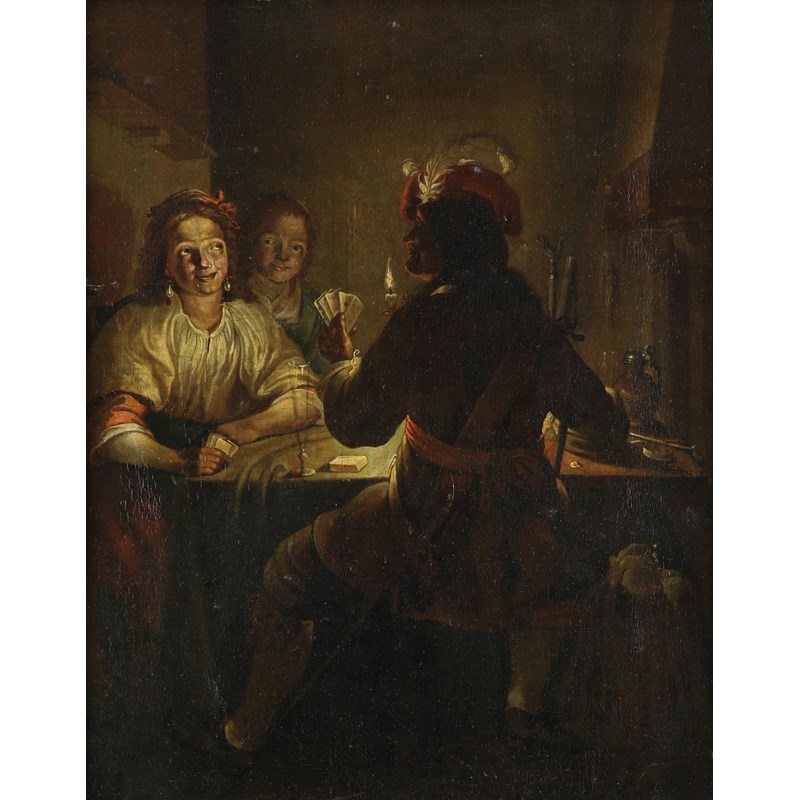 his postumous sale, Berlin, Cassirer and Helbing, 7 December 1926, lot 34 ('Jacob Duck. Kartenspieler. Soldat und Mädchen beim Kartenspiel. Ein zweites Mädchen sieht zu. Auf dem Tisch eine brennende Kerze'), and authenticated by Cornelis Hofstede de Groot in 1925;