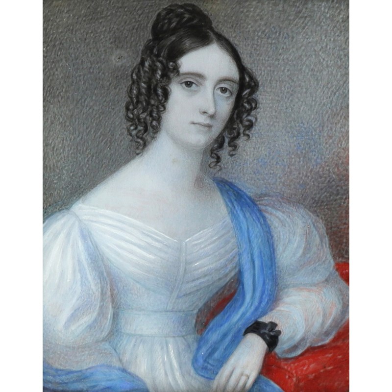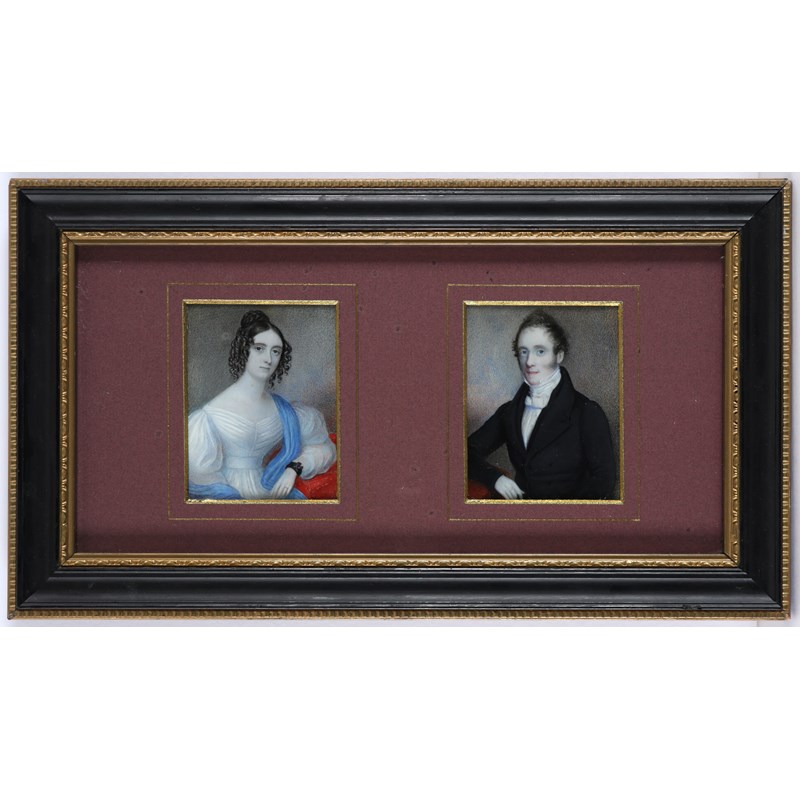 Portrait miniature of a gentleman in a black coat; Portrait miniature of a lady in a white dress and blue shawl