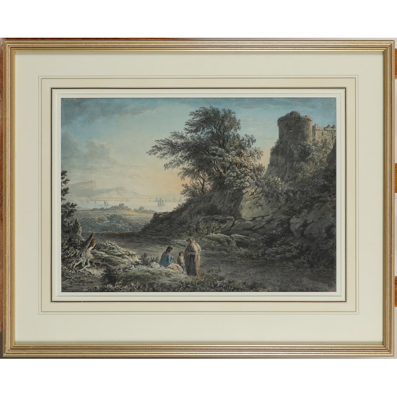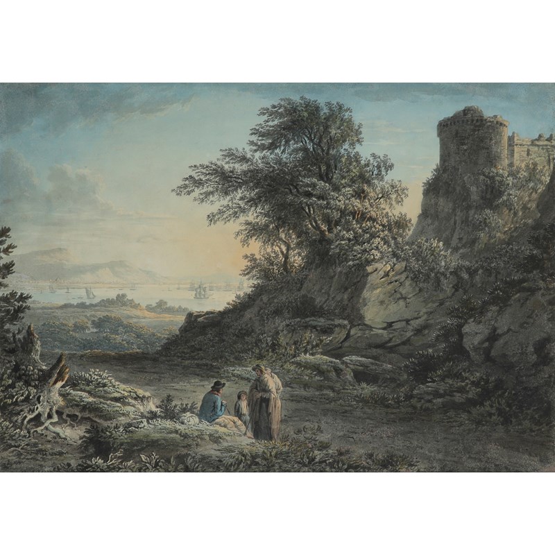 John Glover OWS (1767-1849) Landscape with travellers beneath a castle