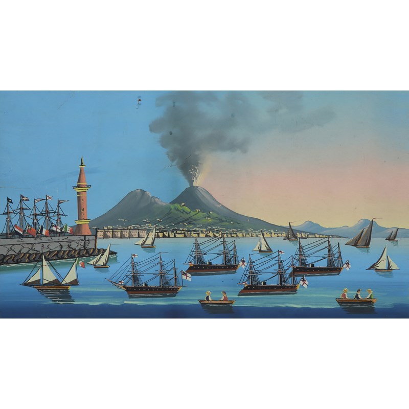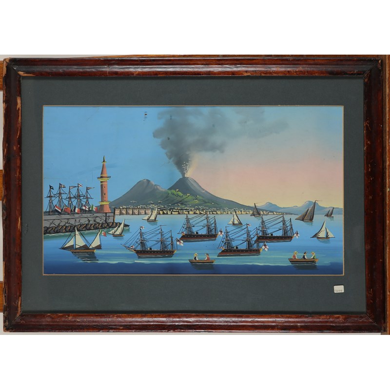 Continental School c. 1900 The Bay of Naples with Vesuvius erupting Gouache 30 x 54 cm; 11¾ x 21¼in