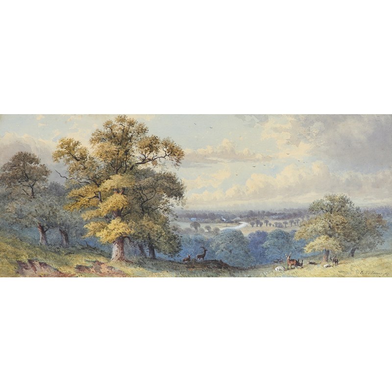 E. K. O. James (act. 1867) A view of Windsor Great Park with deer Signed and dated 67 Watercolour...